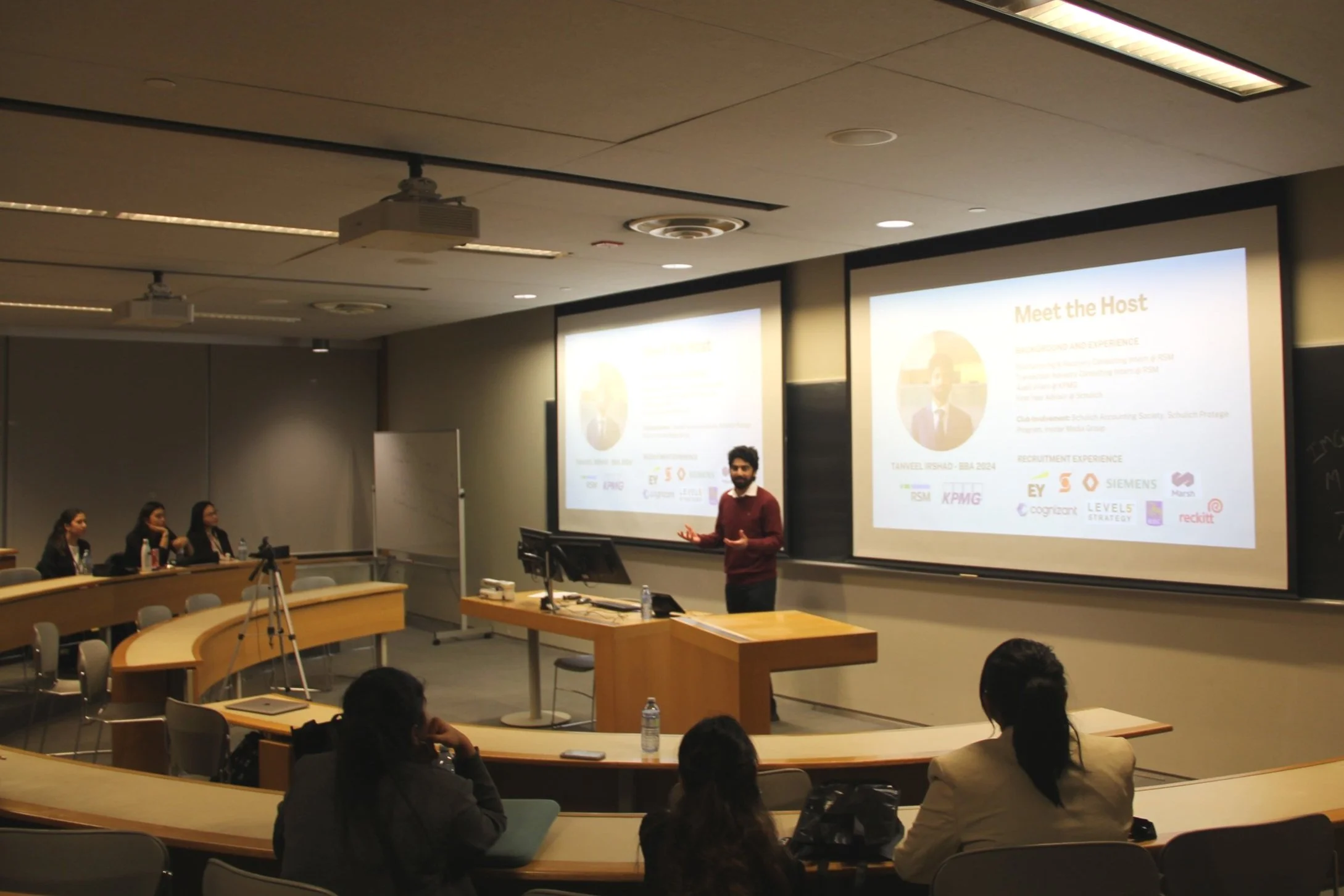 Following the case competition, the students engaged in a Recruitment workshop hosted by Tanveel Irshad. The workshop allowed them to gain valuable insights on optimizing their potential, marketing themselves, and enhancing their chances of securing their desired employment this upcoming recruitment season.